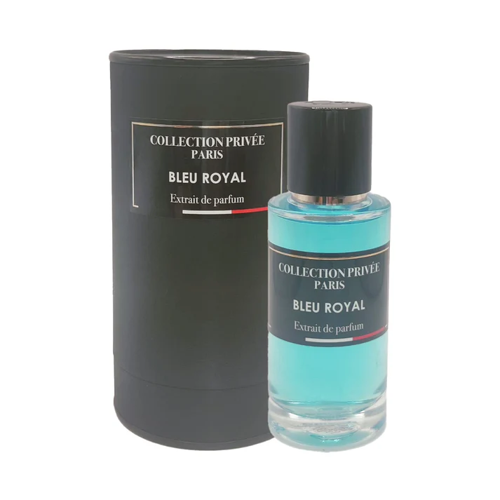 Bleu royal – Collection Privée Paris : Parfum aromatique-boisé alliant notes ambrées, musquées et bois de santal pour une élégance captivante et profonde.